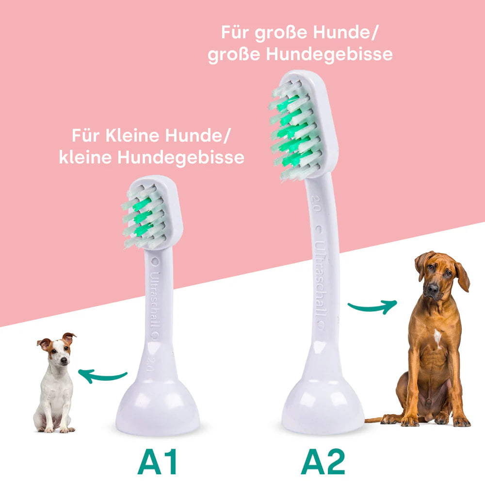 Die passenden Aufsteckbürsten für die Ultraschall-Zahnbürste von Emmi-Pet. Ideal für mittlere bis grosse Hunde und Eckzähne.