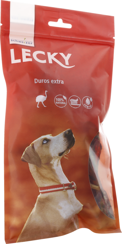 Duros Extra sind 100 % natürliche, luftgetrocknete Straussensehnen – extrem kauresistent und ideal für langanhaltenden Kauspass. Sie reinigen beim Kauen die Zähne und stärken die Kaumuskulatur, ganz ohne Zusatzstoffe.