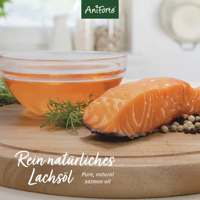 Our AniForte® Salmon oil convinces with the highest quality standards and contributes to the health of your animals - fish oil in premium quality: Because your animal only deserves the best!