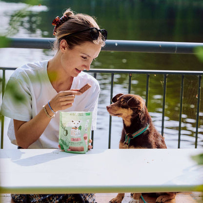 VEGDOG DENTALS können die Zahnpflege unterstützen und sind gleichzeitig der leckerste vegane Hunde-Kausnack, den wir kennen.