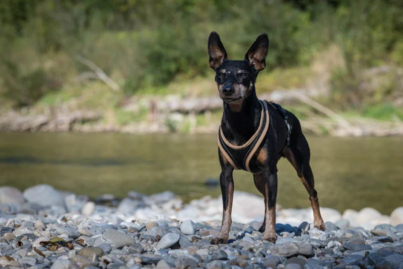 Dank dem Griff auf dem Rücken, kann auch mal kurz nach dem Hund gegriffen werden, um ihn festzuhalten. Die Geschirre von Grösse 10XS – 3XS haben standardmässig keinen Griff!