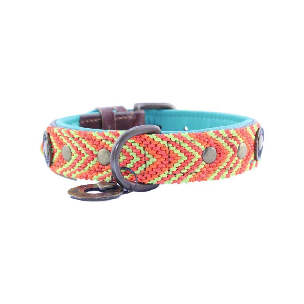 Jedes Exemplar der Gypsy-Reihe wird von Frauen aus Süd-Mexiko von Hand gewebt. Die Halsbänder, die diese Frauen produzieren, sind aus ausgesprochen dickem Nylon gemacht, weshalb die Halsbänder sehr strapazierfähig und stark sind und ein Leben lang halten.