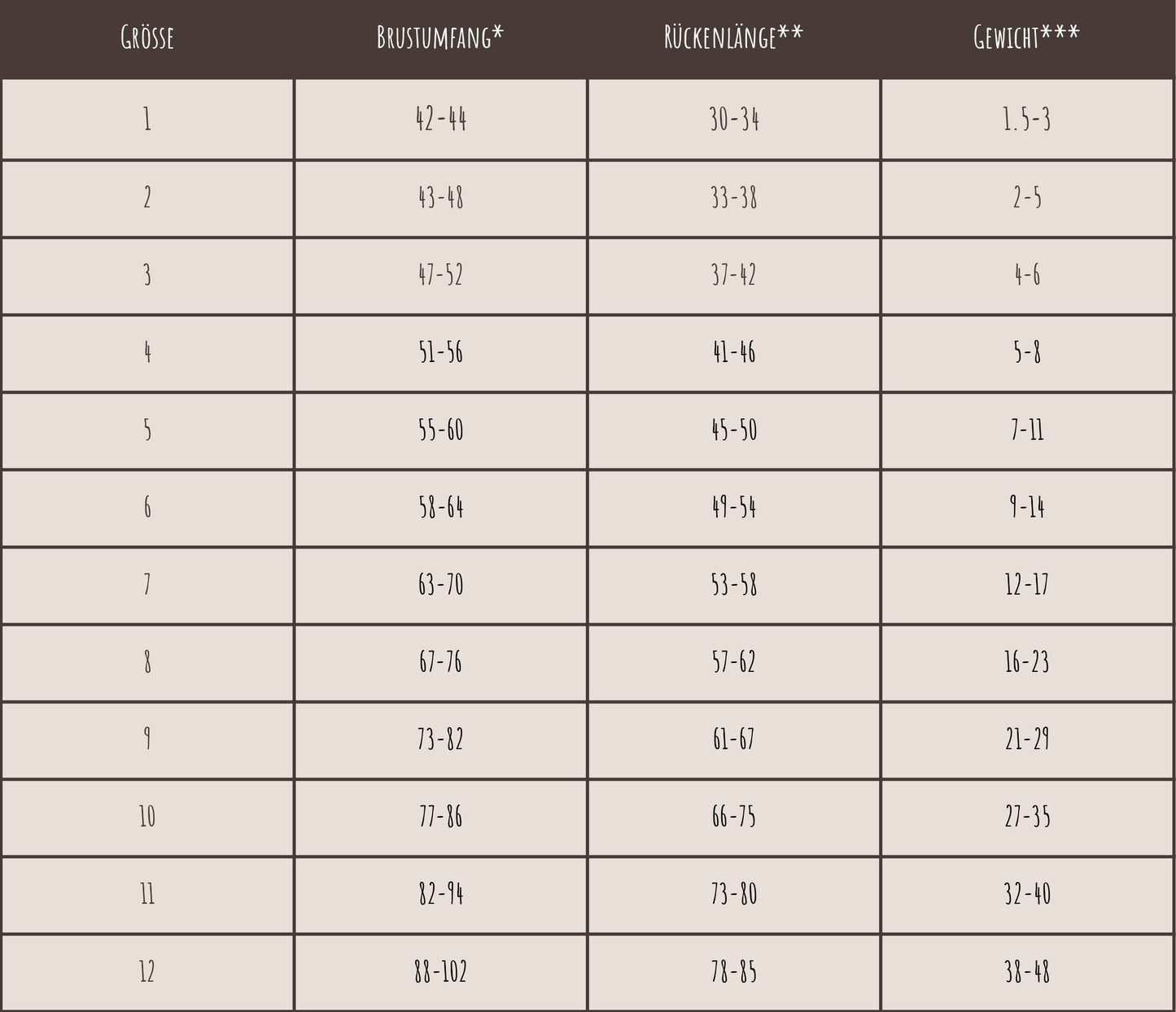 * BRUSTUMFANG an der breitesten Stelle messen.