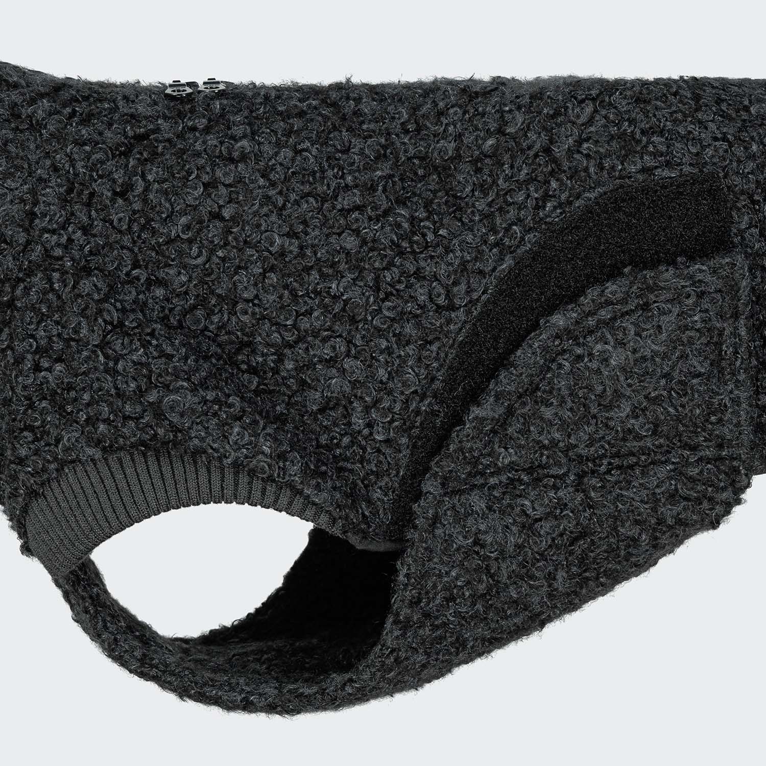 Um die Leine bequem an Halsband oder Geschirr zu befestigen, kommt der wärmende Hundepullover mit Reißverschluss-Öffnung am Rücken. Die praktischen Verschlüsse an den Seiten sind durch Flächenklett besonders sicher und stören optisch dank Ton-in-Ton-Design auch dann nicht, wenn der Sweater im Brustbereich weiter justiert wird.