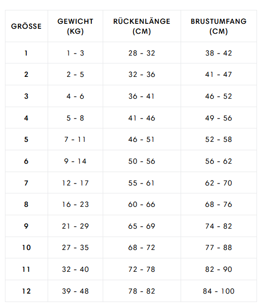 ** RÜCKENLÄNGE messen vom unteren Halsbandrand bis Rutenansatz (bei erhobenem Kopf des Hundes und locker getragenem Halsband).