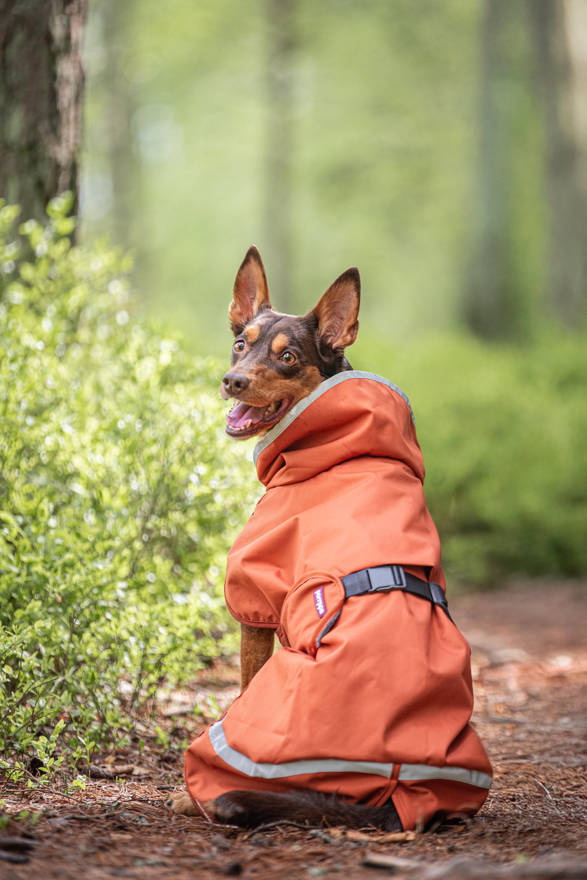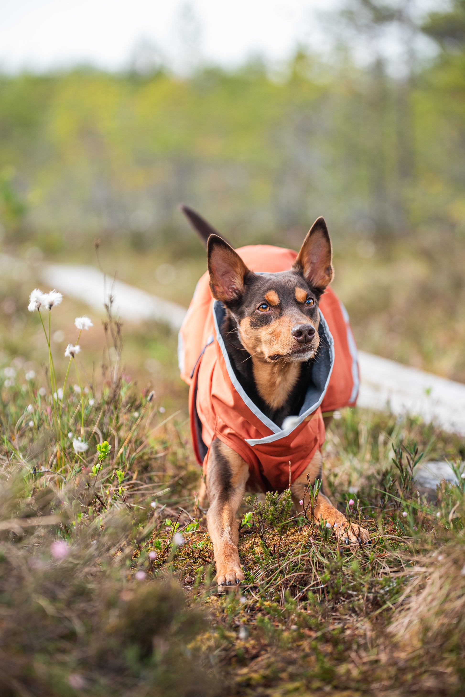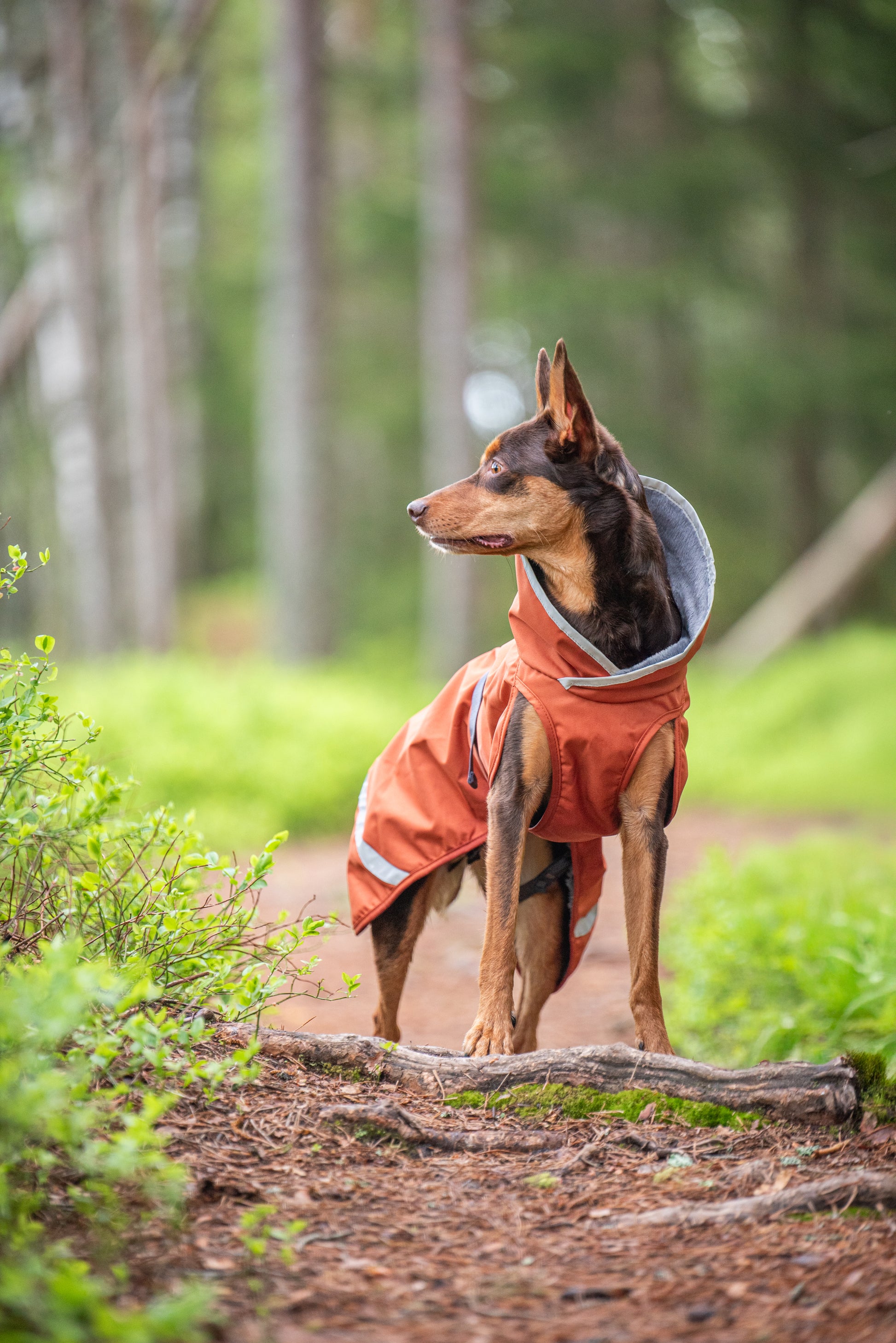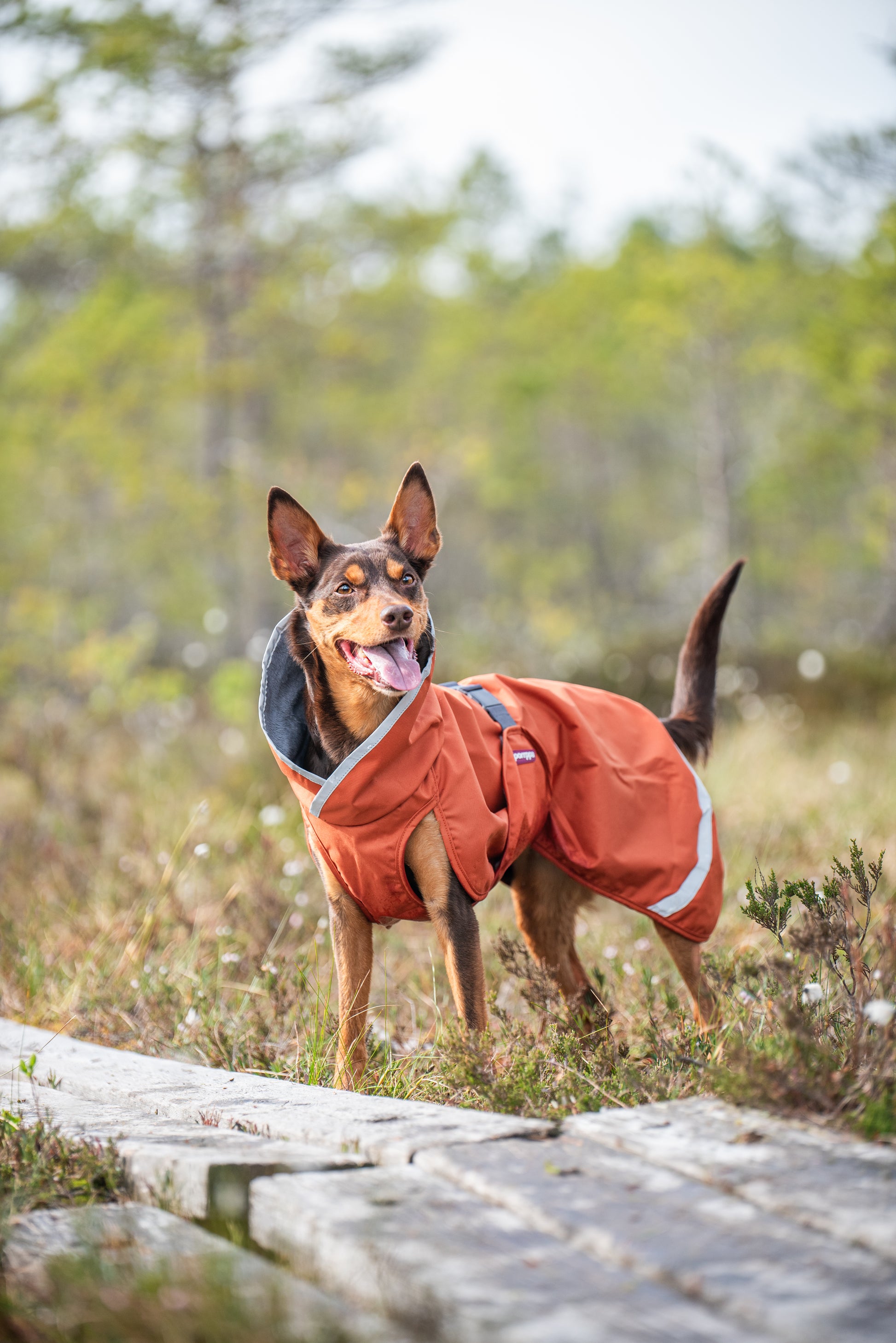 KevytPomppa ist ein mit Webpelz gefütterter Regenmantel, der den Hund in der Zwischensaison trocken und behaglich hält. Das wasserdichte und strapazierfähige Aussenmaterial schützt den Hund vor Regen, Wind und Schmutz. Das Futter besteht aus weichem Kunstfell, das optimal isoliert. Die antistatischen Materialien sorgen dafür, dass sich auch beim langhaarigen Hund das Fell nicht verknotet.