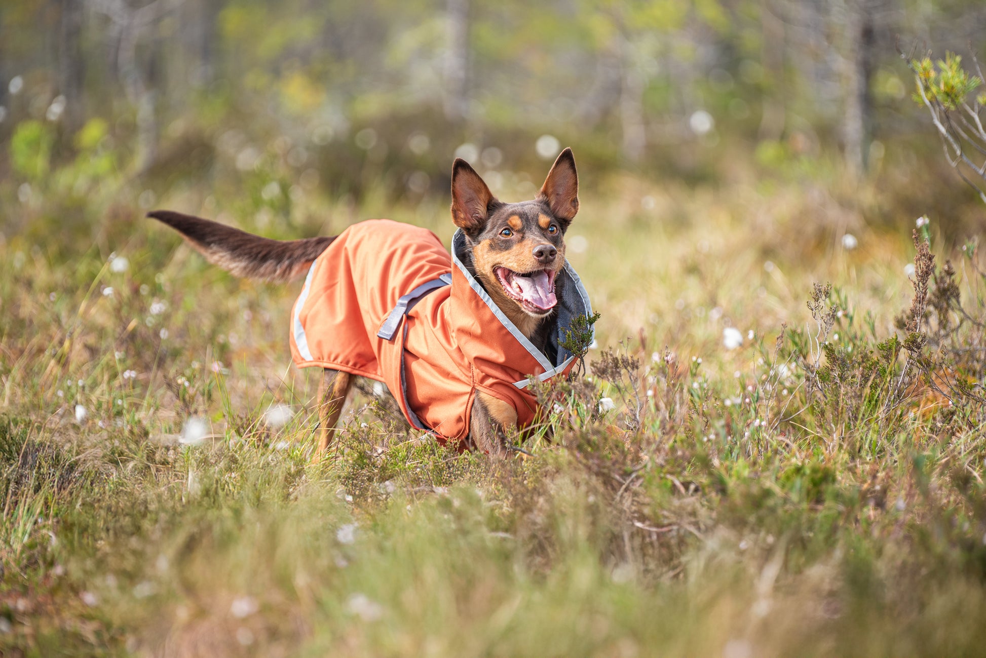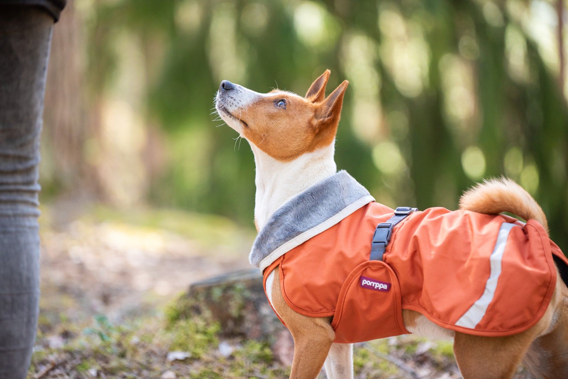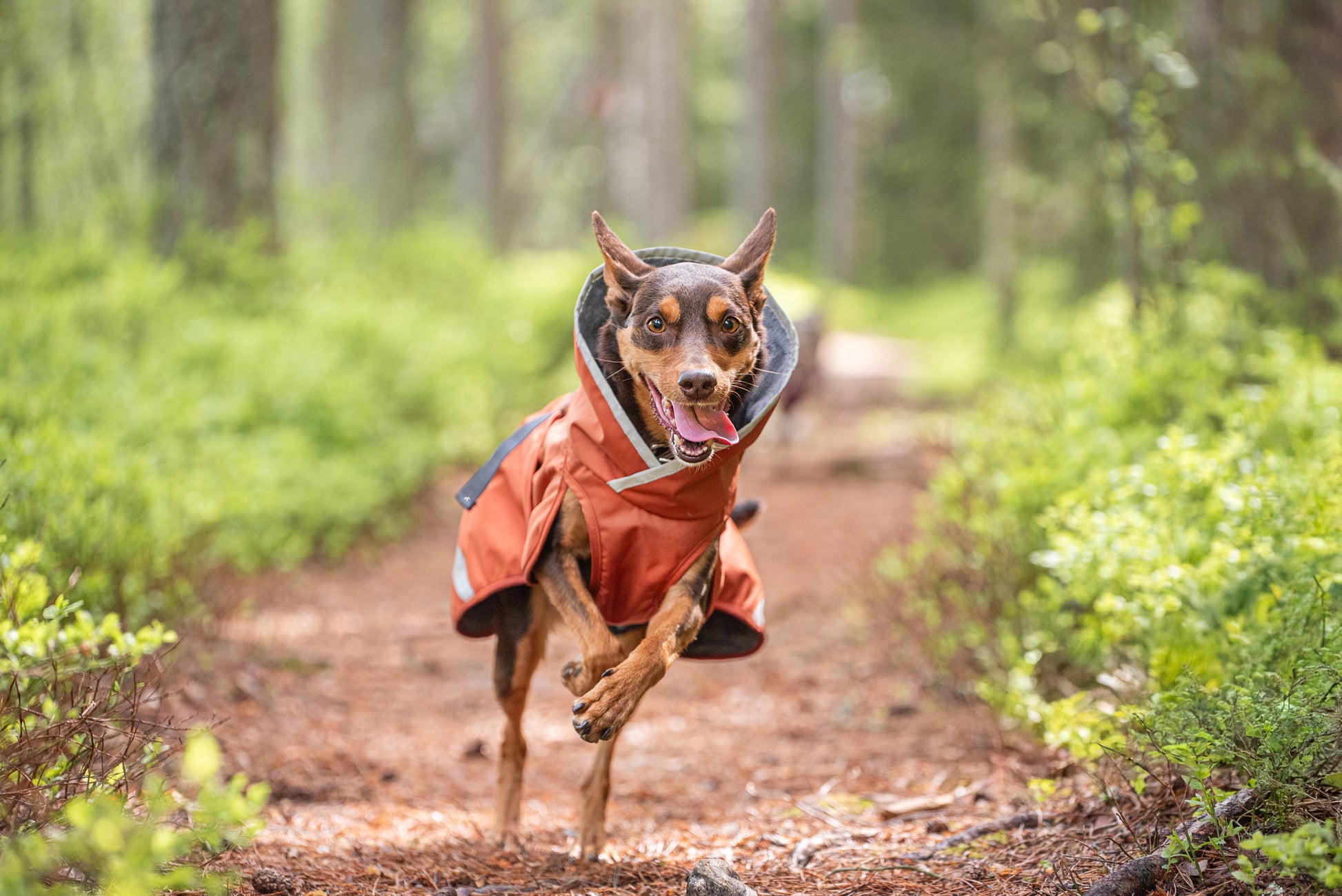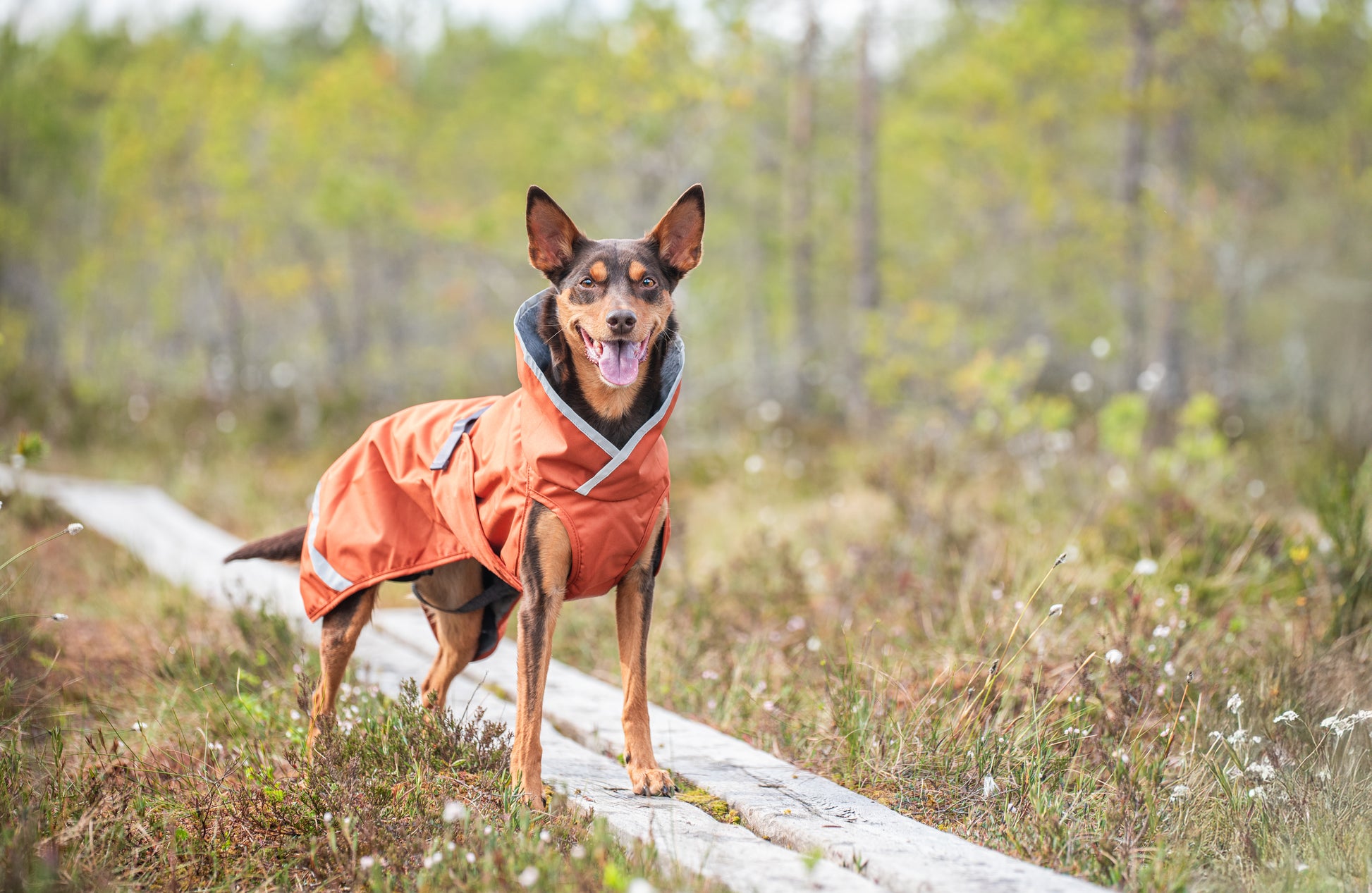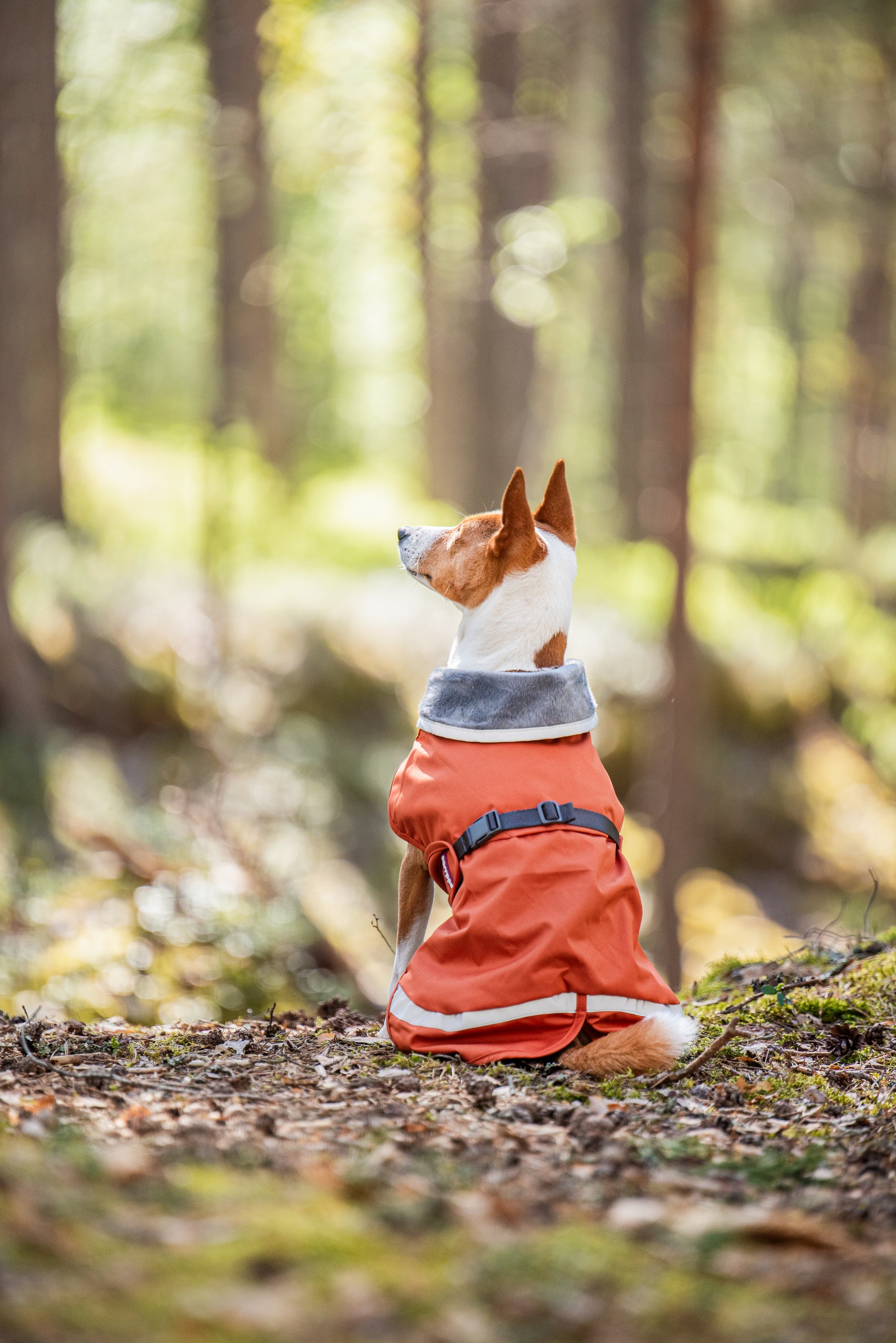 KevytPomppa ist ein mit Webpelz gefütterter Regenmantel, der den Hund in der Zwischensaison trocken und behaglich hält. Das wasserdichte und strapazierfähige Aussenmaterial schützt den Hund vor Regen, Wind und Schmutz. Das Futter besteht aus weichem Kunstfell, das optimal isoliert. Die antistatischen Materialien sorgen dafür, dass sich auch beim langhaarigen Hund das Fell nicht verknotet.