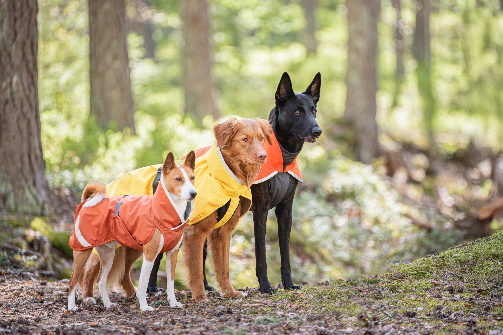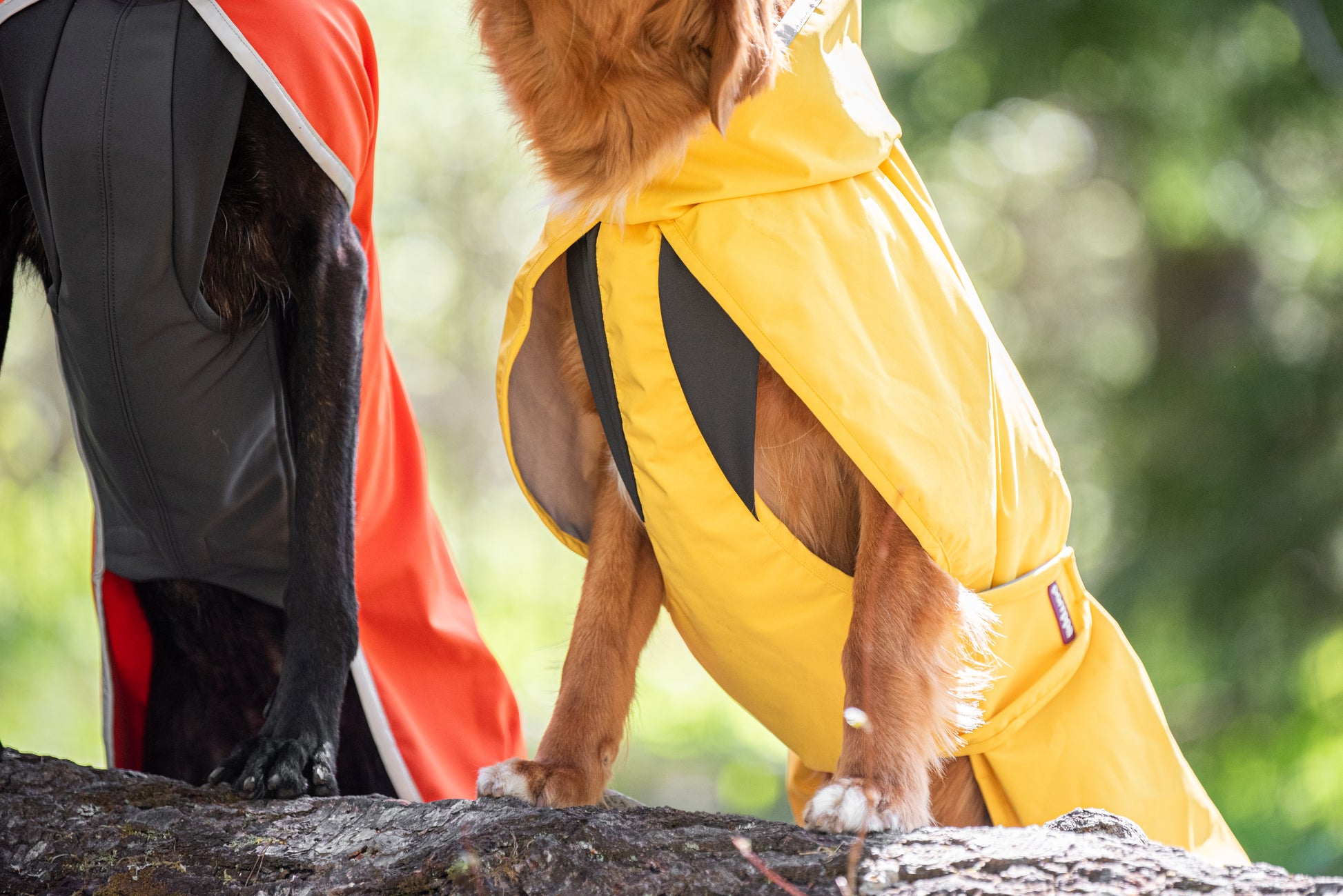 KuoriPomppa ist ein wasser- und winddichter Hunderegenmantel für den ganzjährigen Einsatz. Diese leichte, ungefütterte Shell-Jacke trocknet schnell und lässt sich klein verpacken, sodass man sie problemlos zu jedem Outdoor-Abenteuer mitnehmen kann.