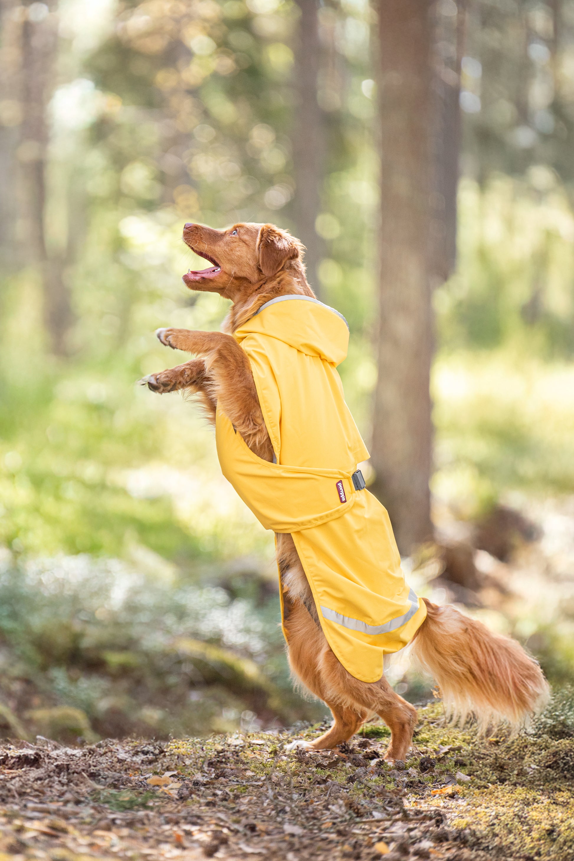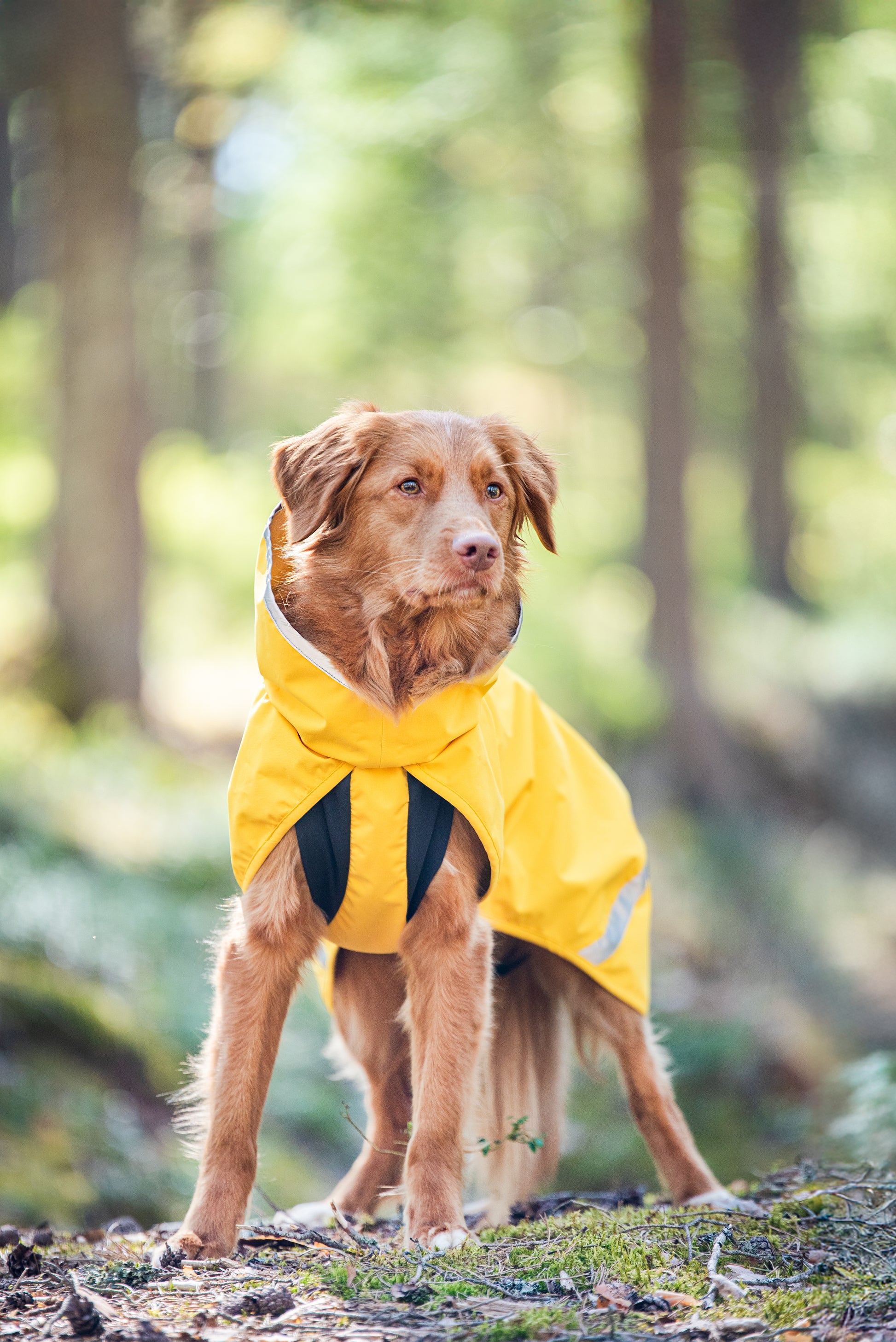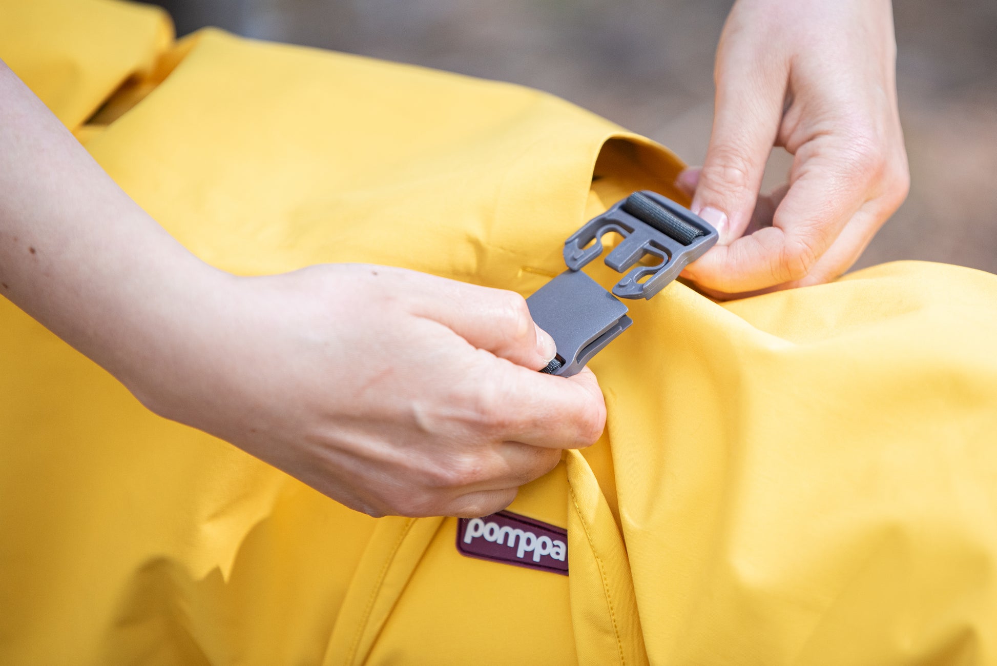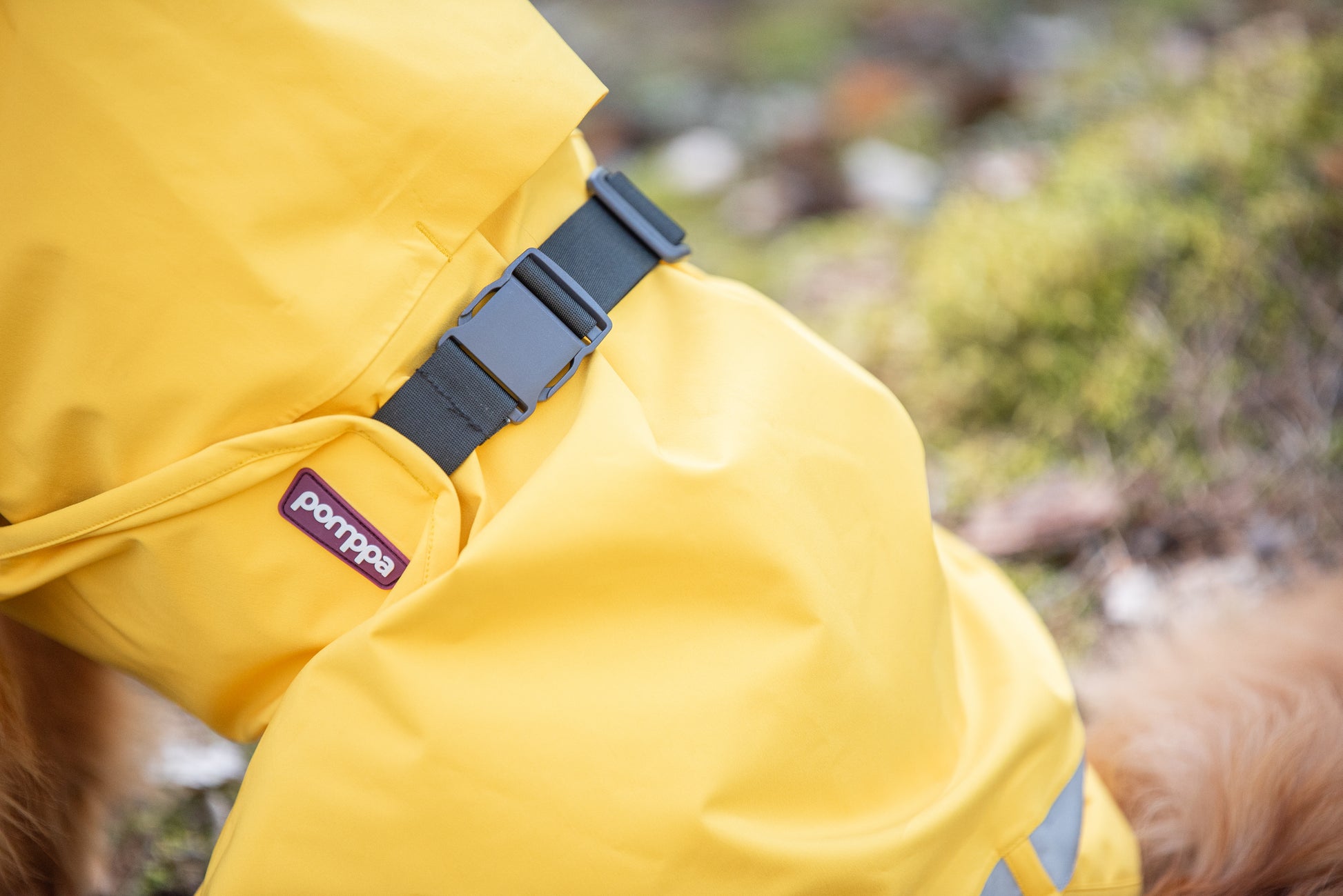 KuoriPomppa, die ungefütterte Hunderegenjacke, ist die neueste Ergänzung der Pomppa-Regenbekleidungsserie. Sie schützt den Hund vor Regen, Wind und Schlamm. KuoriPomppa hat dasselbe beliebte Design wie die anderen Pomppa-Mäntel, jetzt jedoch mit neuen Updates!