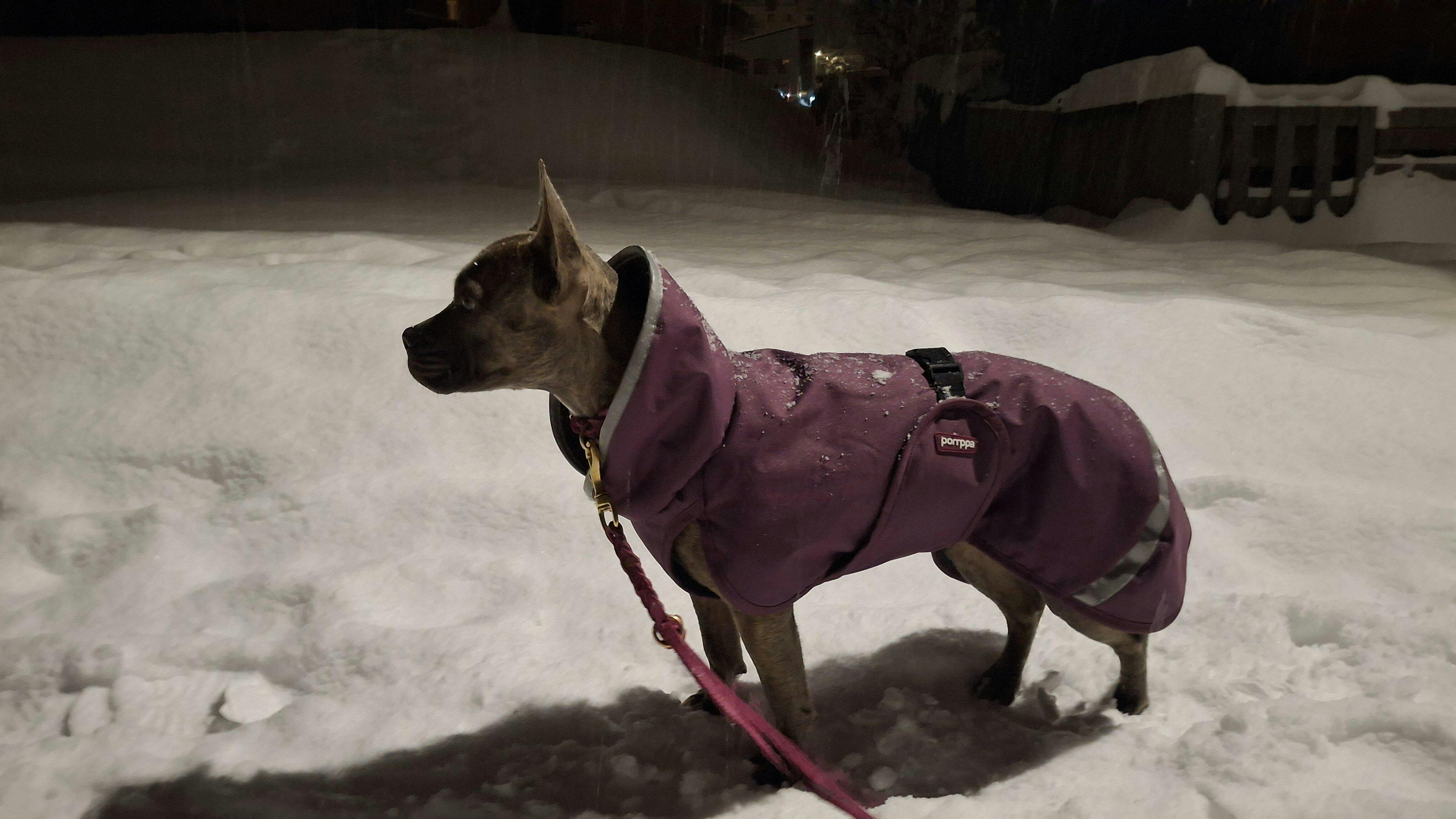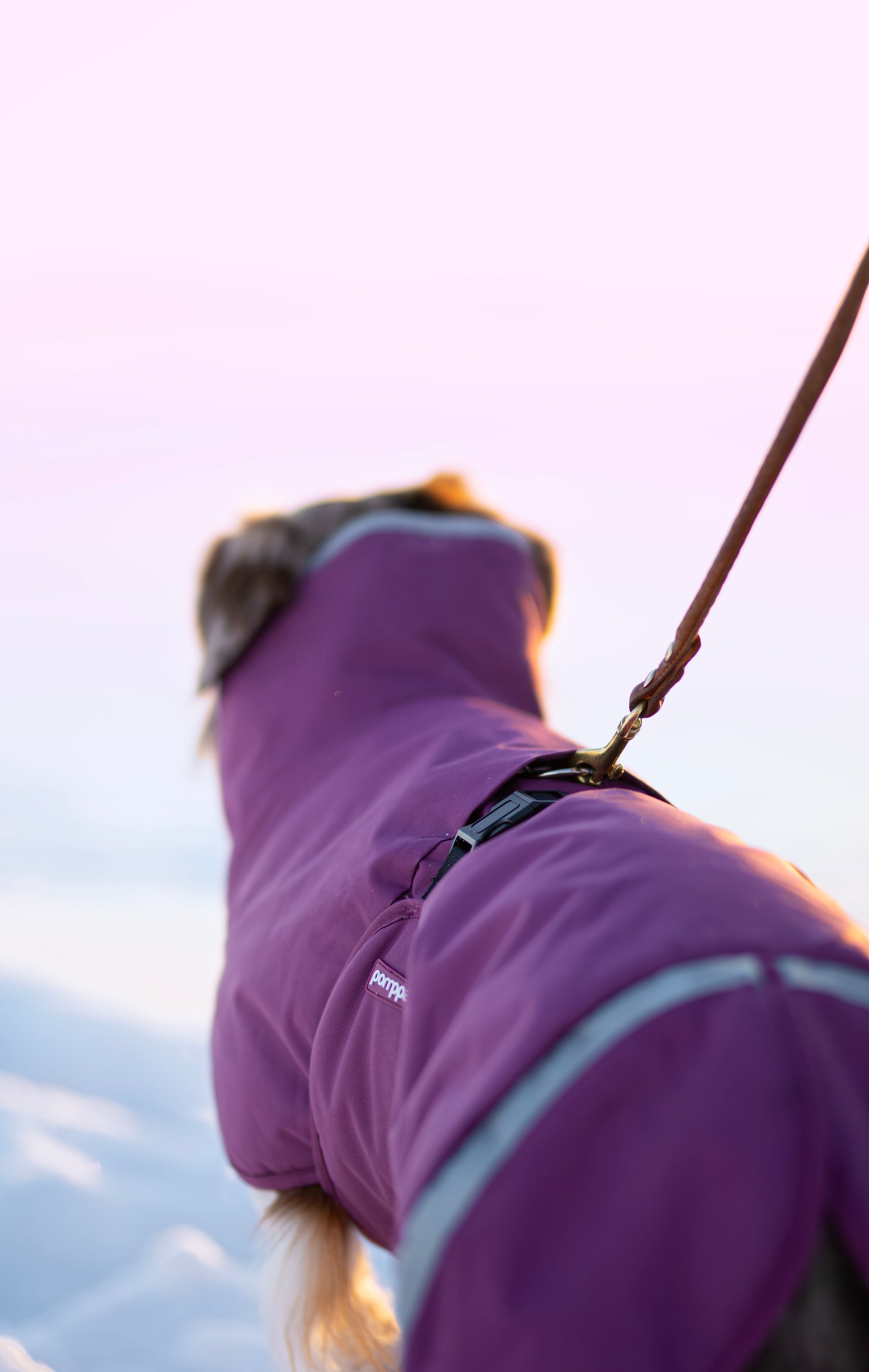 Der Perus Pomppa sitzt super, er ist etwas länger geschnitten als die anderen Pomppa's, so kann für zusätzliche Wärme ein Jumppa Pomppa darunter getragen werden. Meine Hündin ohne Unterfell war so auch nach einem Spaziergang bei -10°C mit Schnee schön warm und trocken unter dem Mantel.