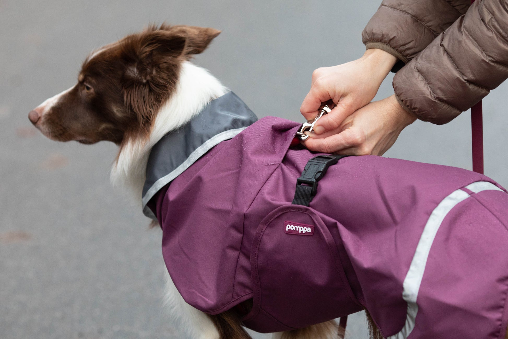 Der PerusPomppa Wintermantel ist ein warmer, wasserdichter und robuster Hundemantel für kleine und grosse Hunde. Er schützt zuverlässig bei Regen, Schnee und Wind. Das dicke Teddyfutter hält deinen Hund auch bei Minusgraden angenehm warm, während das antistatische Innenfutter verhindert, dass sich das Fell verknotet – ideal auch für langhaarige Hunde.