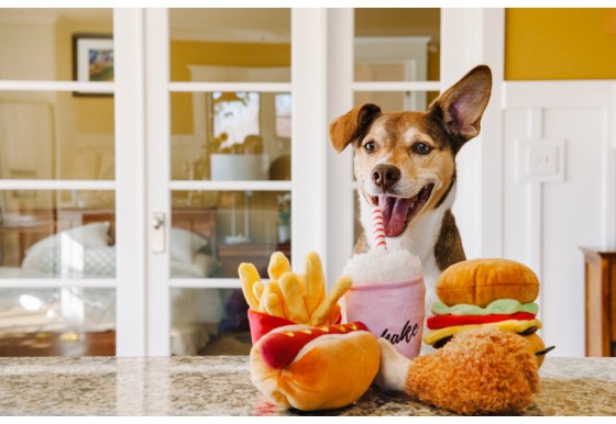 Kein Hamburger-Fan? Kein Problem! Der plüschige Geselle ist auch erhältlich als Milkshake, Fried Chicken, Pommes und Hot Dog!