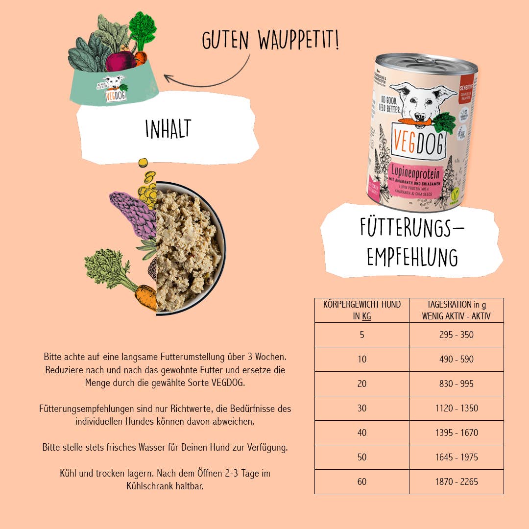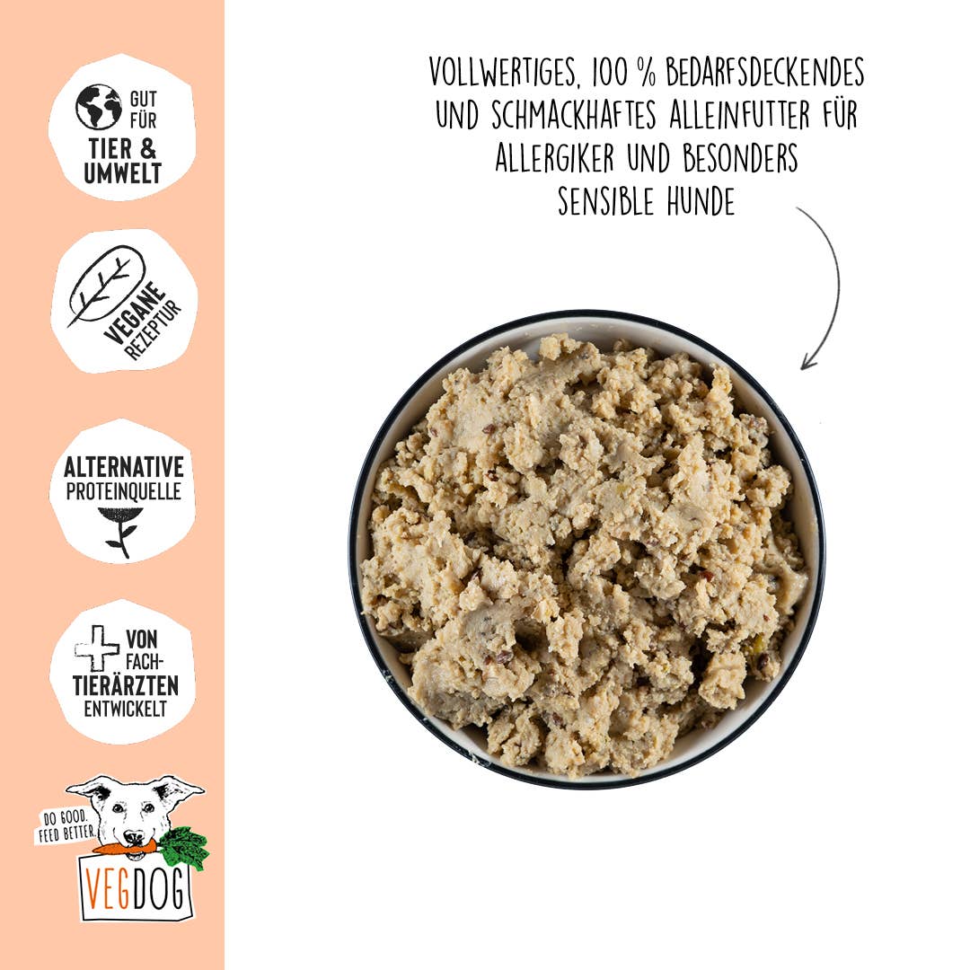 Das VEGDOG SENSITIVE mit Lupinenprotein ist ein vollwertiges Alleinfuttermittel, das vollgepackt mit leicht verdaulichen Zutaten, alternativen Proteinquellen und essentiellen Fettsäuren ist.
