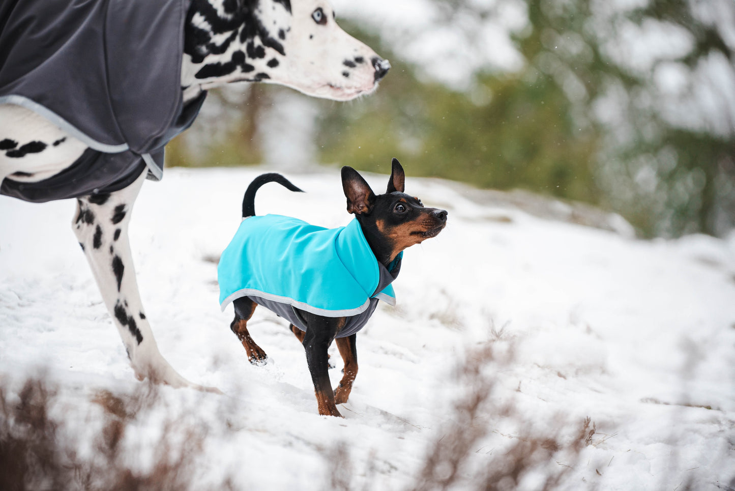 🐾 Wasserdichter, atmungsaktiver und flexibler Softshell-Stoff auf dem Rücken, Hals und der Brust