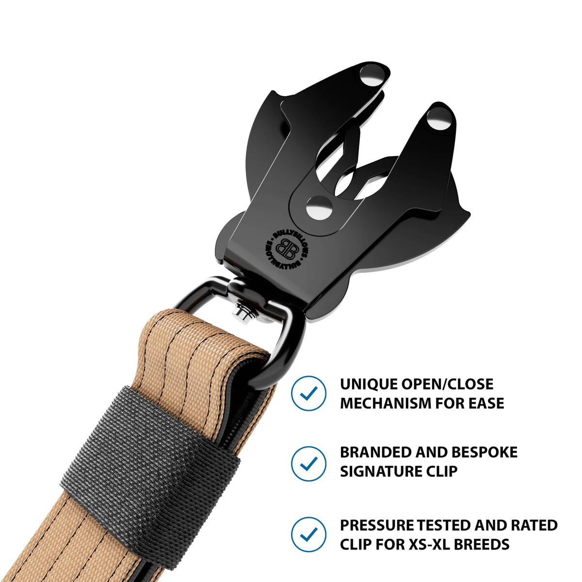 Die BullyBillows Kurzführerleine ist eine kurze, gepolsterte Leine, die dafür entwickelt wurde, Hunde sicher im Auto anzubinden oder in schwierigen Situationen zu kontrollieren. Sie verfügt über einen maßgeschneiderten, benutzerfreundlichen Clip, der es Dir ermöglicht, deine Fellnase an jedem Geschirr oder Halsband zu befestigen und wieder zu lösen.